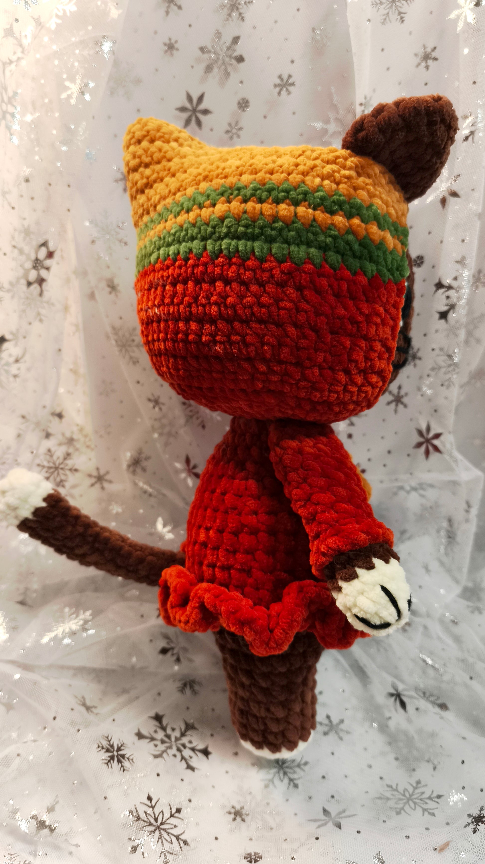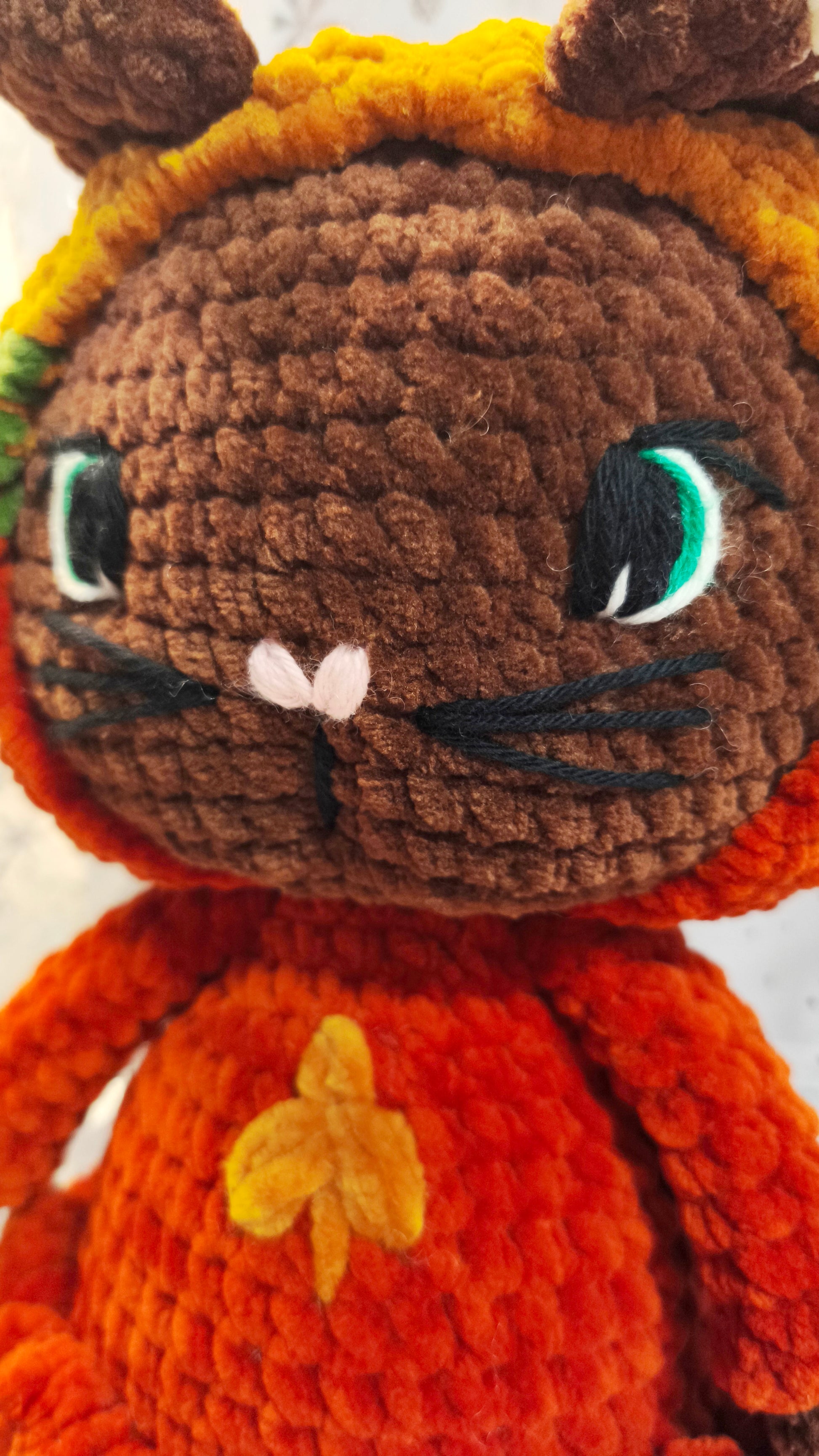 Die Hoodie Cat „Mairéad“ ist ein warmes Herbstjuwel ein liebevoll handgefertigtes Stofftier im cozy Hoodie-Dress, gestaltet in kräftigen Herbsttönen wie Rost, Gold und Kastanie. 🍂Ihr weiches Kapuzenkleid macht sie zu etwas ganz Besonderem: verspielt, gemütlich und stilvoll zugleich. Mit ca. 30 cm Größe liegt sie perfekt in den Armen und lädt sofort zum Knuddeln, Liebhaben und Dekorieren ein.