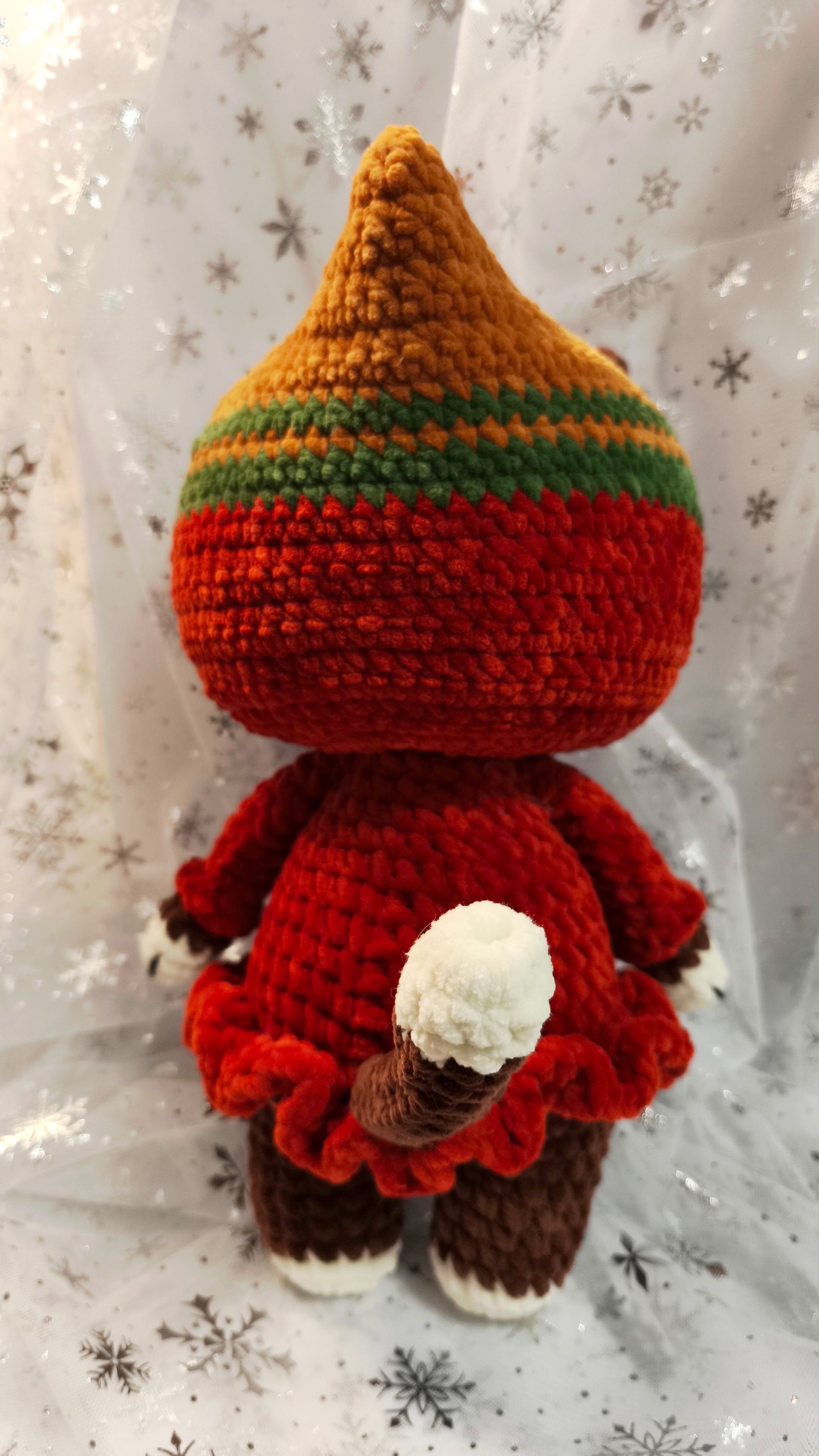 Jedes Detail wurde von Hand gefertigt vom sanften Farbverlauf ihres Kleides bis zur kleinen aufgestickten Blatt-Applikation, die ihren herbstlichen Charakter liebevoll unterstreicht.Ein Unikat, das Freude schenkt: als Geschenk, als Sammlerstück oder als herbstlicher Lieblingsbegleiter für dich selbst. 🍁✨
